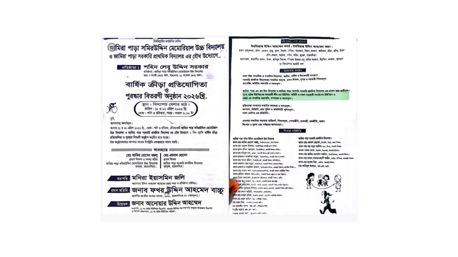 জামিরাপাডা এসএম উচ্চ বিদ্যালয়ের ক্রীড়া অনুষ্ঠান ঘিরে বিতর্ক: নিষিদ্ধ সংগঠনের নেতাদের দাওয়াত, সভাপতিত্ব নিয়েও প্রশ্ন.!
