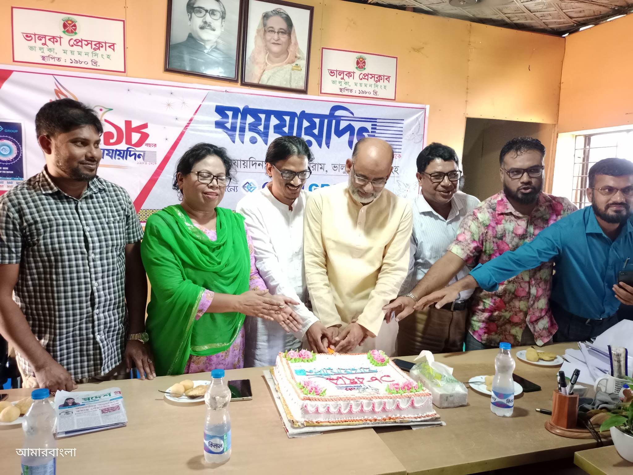 নিজস্ব প্রতিবেদন : ময়মনসিংহের ভালুকায় মঙ্গলবার (৬জুন) সকালে ভালুকা প্রেসক্লাব কার্য্যালয়ে বাংলাদেশের বহুল প্রচারিত ও পাঠক প্রিয় দৈনিক যায়যায়দিনের ১৮ম প্রতিষ্ঠাবার্ষিকীতে কেক কাটা ও আলোচনাসভার মধ্য দিয়ে উদযাপিত হয়েছে। অনুষ্ঠানে দৈনিক যায়যায়দিনের ভালুকা প্রতিনিধি সফিউল্লা আনসারীর সভাপতিত্বে ও ভালুকা প্রেসক্লাবের সাধারণ সম্পাদক মো. আসাদুজ্জামান সুমনের সঞ্চালনায় প্রধান অতিথি হিসেবে বক্তব্য রাখেন ভালুকা উপজেলা পরিষদ ভাইস চেয়ারম্যান রফিকুল ইসলাম পিন্টু, বিশেষ অতিথি হিসেবে বক্তব্য রাখেন ভালুকা উপজেলা মহিলা ভাইস চেয়ারম্যান ড.শেলিনা রশিদ, ভালুকার এ্যাপোলো ইন্সটিটিউট অব কম্পিউটারের অধ্যক্ষ এ আর এম শামসুর রহমান লিটন, উপজেলা ছাত্রলীগের সাবেক সভাপতি খোকন হোসেন ডালী প্রমুখ। এ সময় যায়যায়দিন পত্রিকার সাবেক প্রতিনিধি মরহুম ওয়দুদ মিয়ার রুহের মাগফেরাত কামনা করে মোনাজাত শেষে বক্তারা তাদের বক্তব্যে দৈনিক যায়যায়দিনের উত্তরোত্তর সমৃদ্ধি ও সফলতা কামনা করেন। অনুষ্ঠানে বিভিন্ন প্রিন্ট ও ইলেকট্রনিক মিডিয়ার সাংবাদিকসহ নানা শ্রেণী পেশার ব্যক্তিবর্গ উপস্থিত ছিলেন।