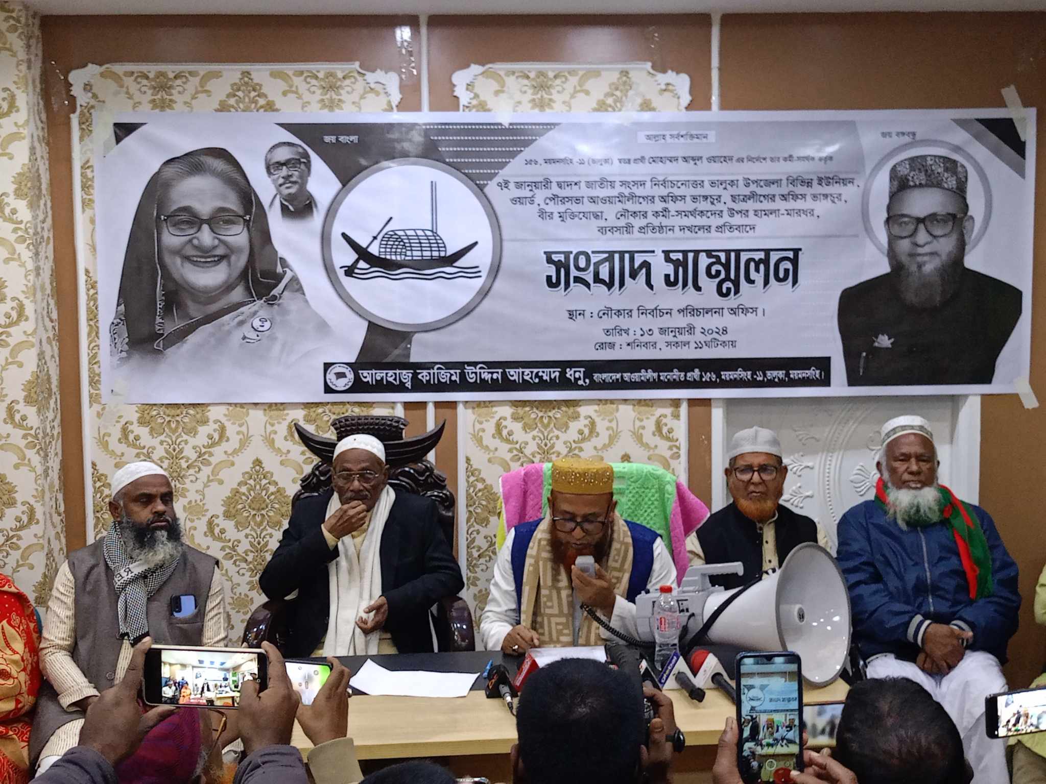 নিজস্ব প্রতিবেদক: দ্বাদশ জাতীয় সংসদ নির্বাচনে ময়মনসিংহ-১১ ভালুকা আসনে সতন্ত্র প্রার্থী মোহাম্মদ আব্দুল ওয়াহেদ ট্রাক প্রতিক নিয়ে জয়ের পর ট্রাকের নেতাকর্মী কর্তৃক সদ্য সাবেক হওয়া আওয়ামী লীগ সমর্থিত নৌকার প্রার্থীর সমর্থকদের বিভিন্ন অফিস ভাংচুর, বীর মুক্তিযোদ্ধাসহ নৌকার কর্মী সমর্থকদের উপর হামলা-মারধর ও ব্যবসায় প্রতিষ্ঠান দখলের প্রতিবাদে সংবাদ সম্মেলন হয়েছে। ১৩ জানুয়ারী শনিবার সকালে নৌকার নির্বাচন পরিচালনা অফিসে সংবাদ সম্মেলনটি করেন বাংলাদেশ আওয়ামীলীগের মনোনীত প্রার্থী আলহাজ্ব কাজিম উদ্দীন আহম্মেদ ধনু। এসময় নির্বাচনে জয়ের পর প্রার্থী আব্দুল ওয়াহেদের কর্মীরা নৌকার পক্ষে নির্বাচন করা কর্মী সমর্থকদের বিভিন্ন হামলার ঘটনা তুলে ধরেন তিনি। সংবাদ সম্মেলনে আরও উপস্থিত ছিলেন, উপজেলা আওয়ামী লীগের সভাপতি এড. শওকত আলী, বীর মুক্তিযোদ্ধা পারভেজ খোকন, উপজেলা যুবলীগের সভাপতি আনিসুর রহমান খান রিপন, উপজেলা কৃষকলীগ সভাপতি আহসান হাবিব মোহন, মল্লিকবাড়ী ইউনিয়ন যুবলীগের সভাপতি আব্দুল হামিদ প্রমূখ।